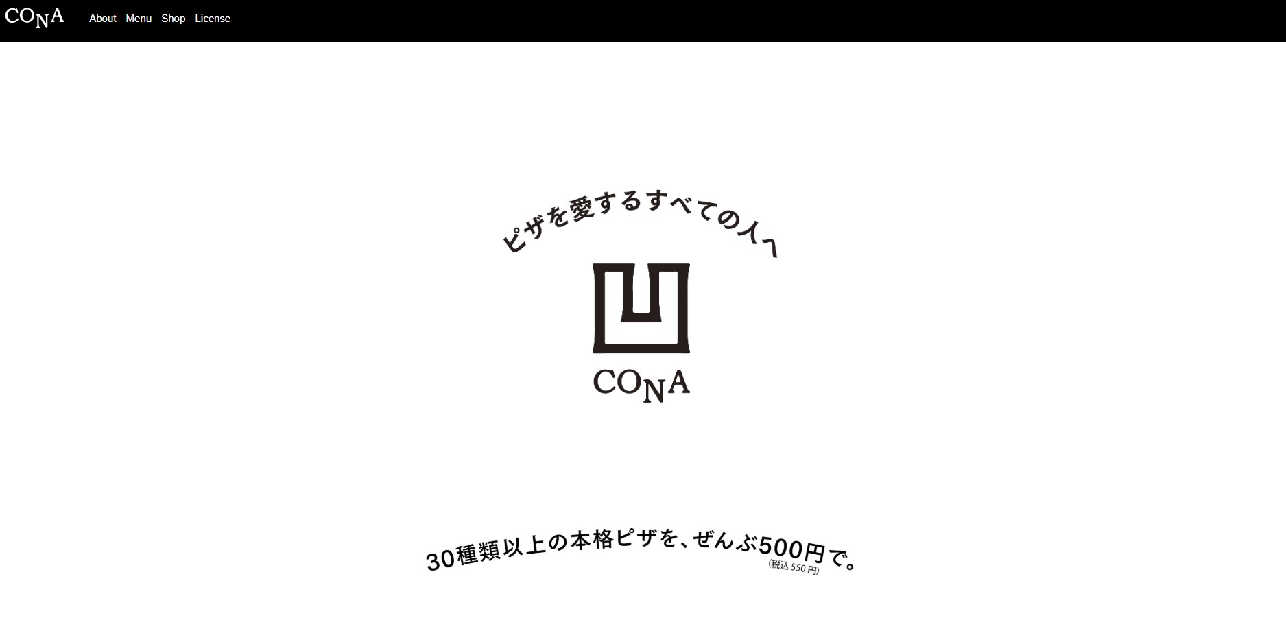 石窯で焼き上げた30種類以上の本格的なピザを、1枚500円(税込550円)というリーズナブルな価格で提供。リーズナブルな価格と本格的な味で、幅広い客層に支持されています。直営店の店舗展開にとどまらず、CONAはフランチャイズ形式でのライセンス展開も行っています。